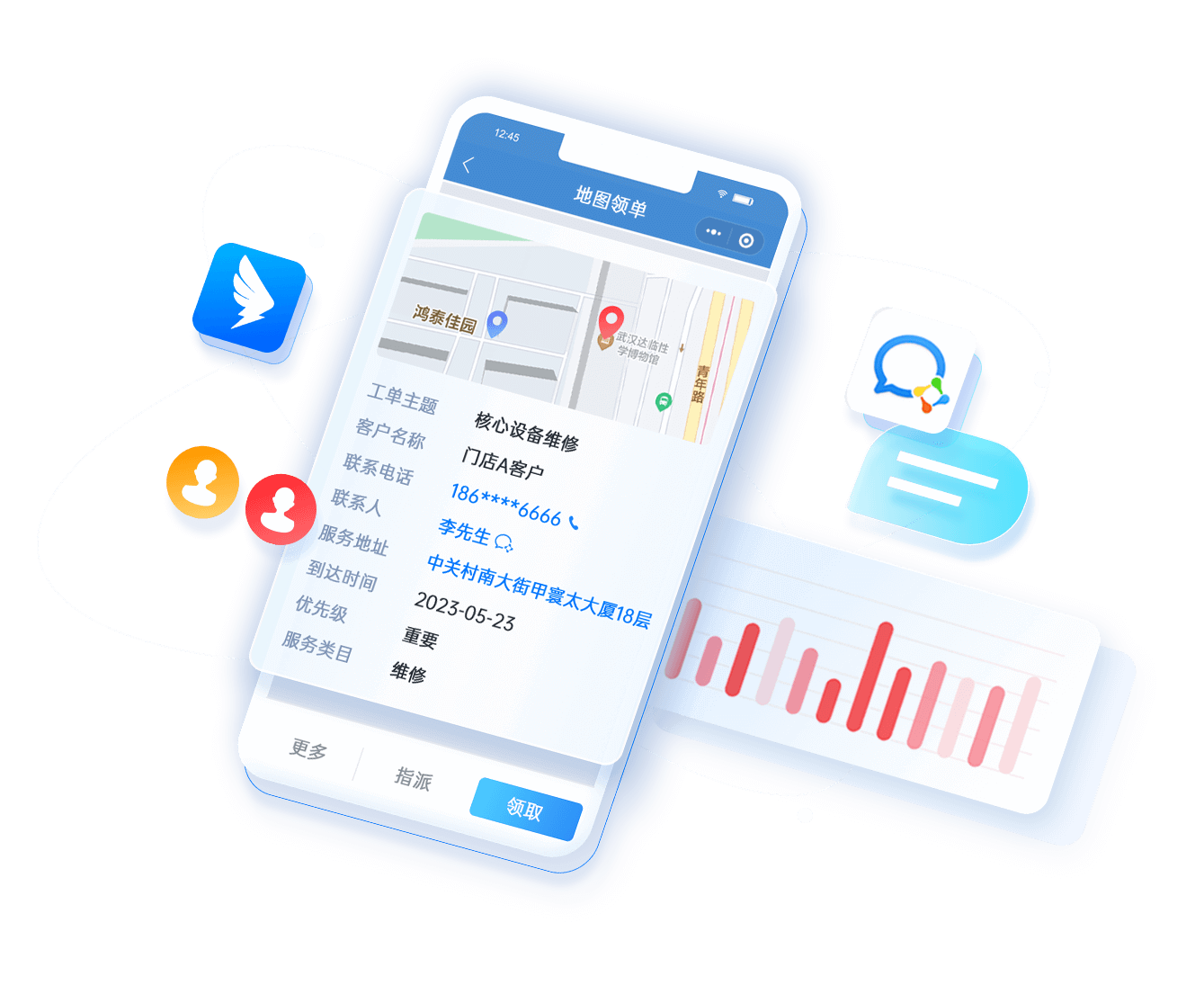 • 按區(qū)域/工單類(lèi)型/產(chǎn)品類(lèi)型進(jìn)行地圖派單、手動(dòng)派單和工單池?fù)寙?/li>